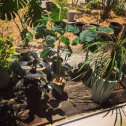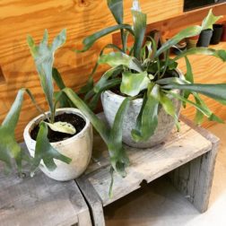 株分けしたコウモリランとモンステラ